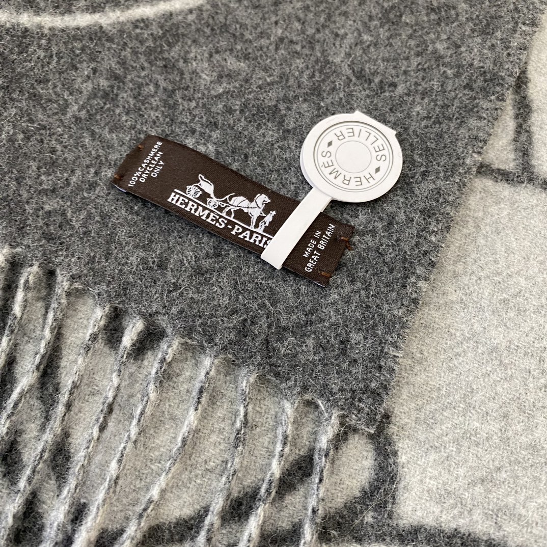 Hermes(エルメス)新作『馬術インターリーブ』カシミヤスカーフ・グレー & ホワイト