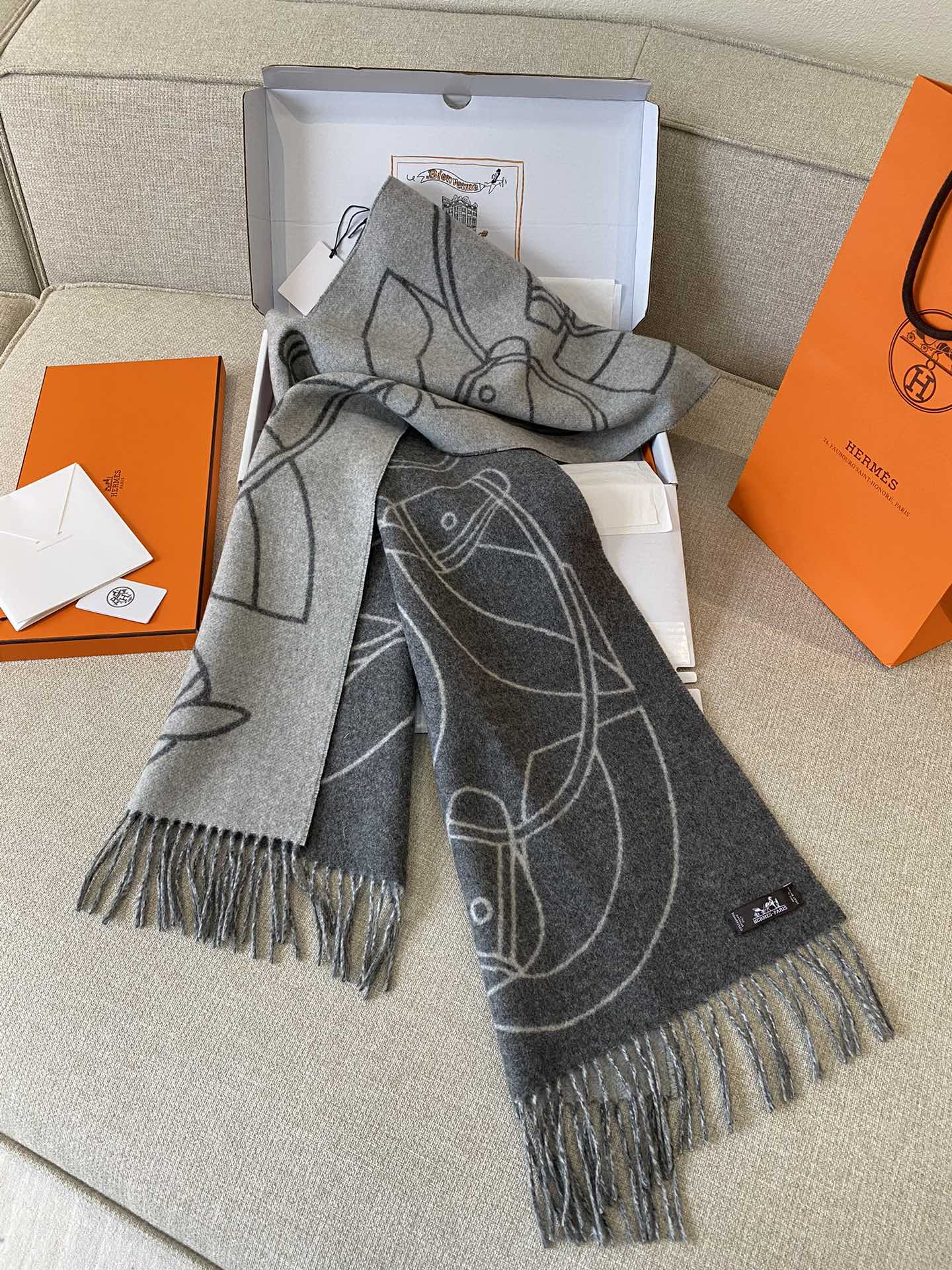 Hermes エルメス)・新作『馬術インターリーブ カシミヤスカーフ・グレー & ホワイト