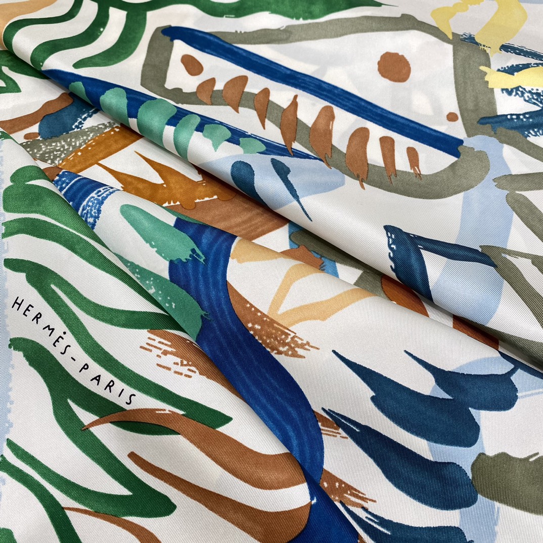 オリジナルスペックの生地を使用!精緻な手作業による縁かがりを施し、配色は高級感あふれるデザインで❤️デザイン内容が鮮明、ラインの存在感も強い特徴を持ちます!デザインのインスピレーションは、中世の写本(マニュスクリプト)、愛と戦争をテーマにした叙情詩の手稿(手書き原稿)、さらに 1960 年代に世界的に評価の高かったポーランドのポスターから得られています。21 世紀の「騎士詩人」として、デザイナーは太く、まるで子供のような天真烂漫な筆致で輪郭を描き、このスカーフに明るく陽気な雰囲気を添えています。商品仕様