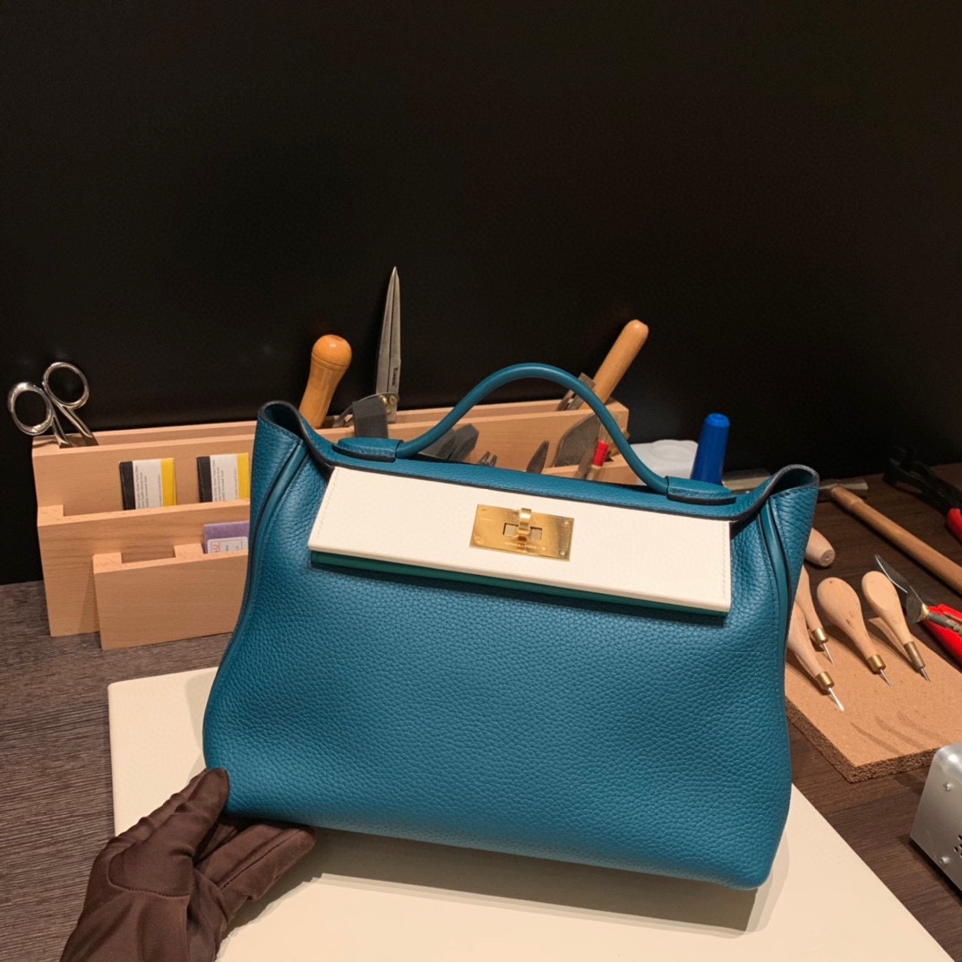 エルメス ケリー   kelly 2424 togo & swift W0 /Vert Bosphore& 6H /Vert Veronese 29cm ゴールド金具 29cm 全手縫い