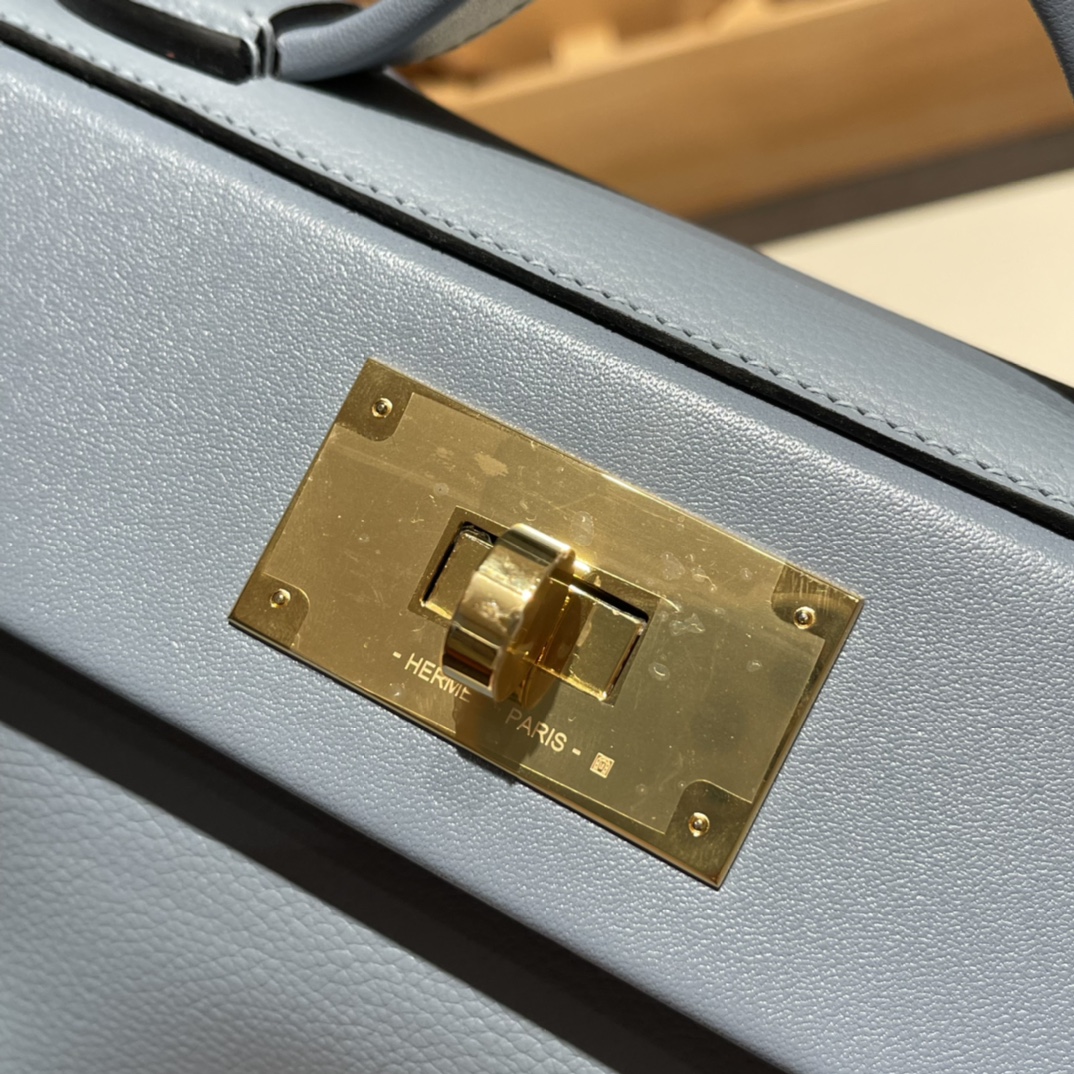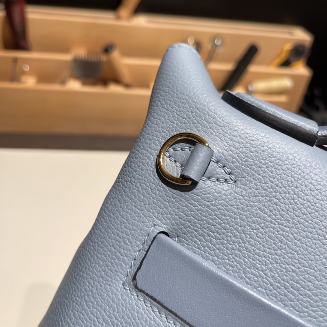 エルメス ケリー 21cm Mini2424 J7 /Blue Lin evercolor ゴールド金具 21cm 全手縫い