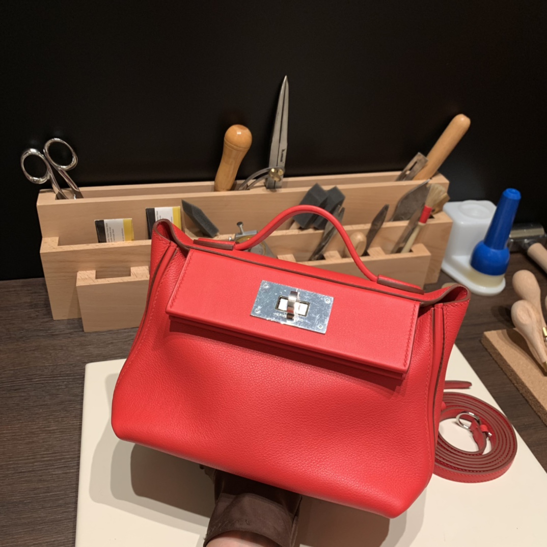 エルメス ケリー  21cm Mini2424 2424 evercolor S3/Rouge Cœur シルバー金具 全手縫い