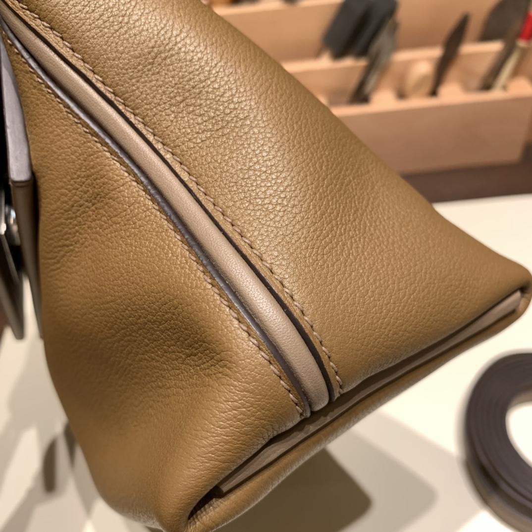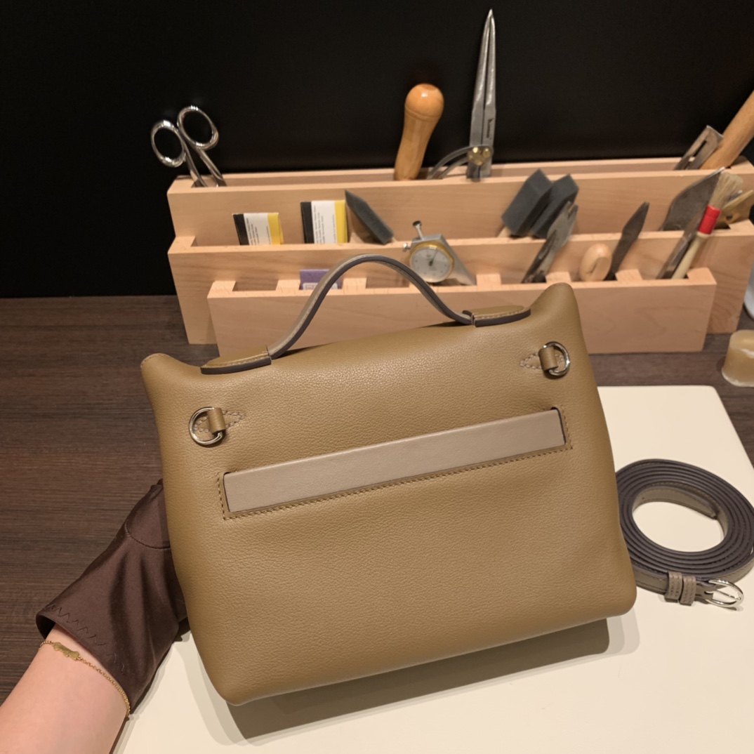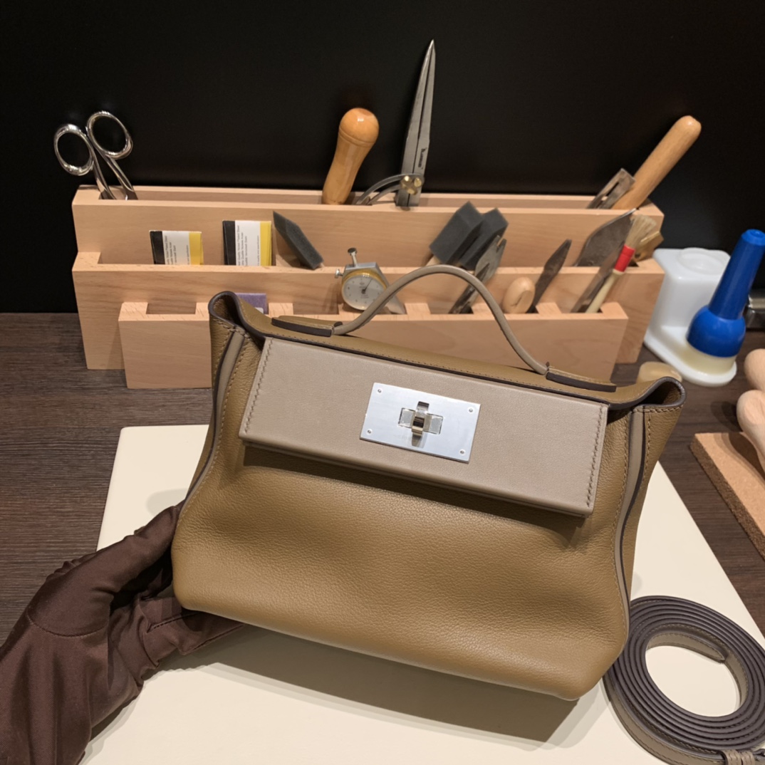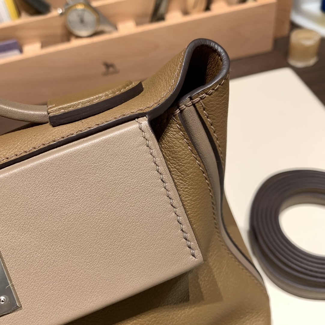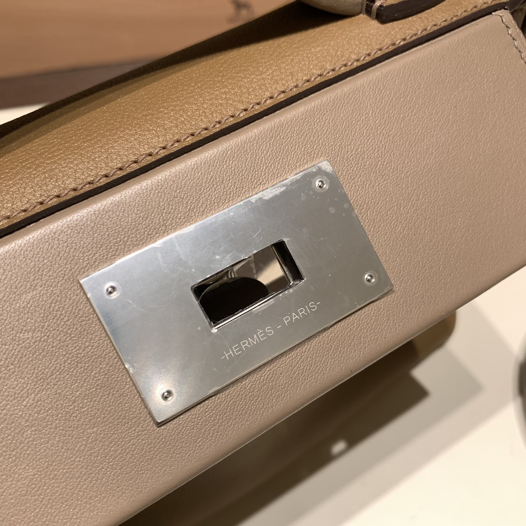 エルメス ケリー  21cm Mini2424 evercolor D0 /Beige de Weimar& 18 /Étoupe Grey シルバー金具 全手縫い