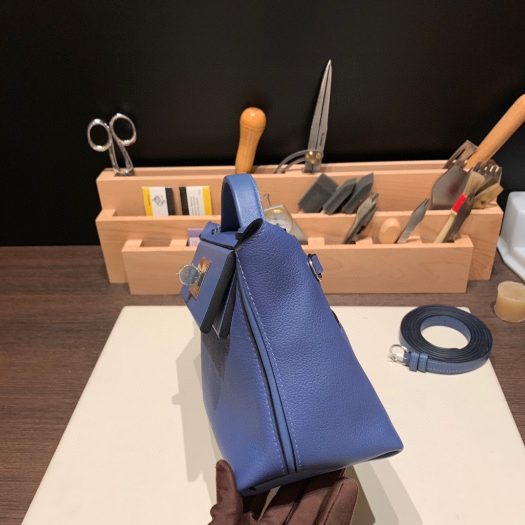 エルメス ケリー 21cm Mini2424 evercolor 7E /Blue Brighton シルバー金具 全手縫い