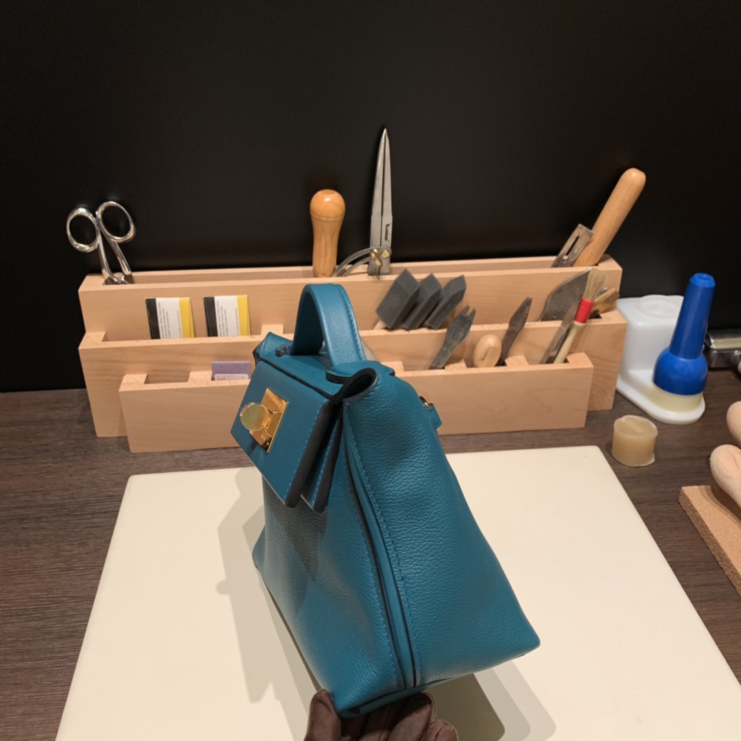 エルメス ケリー  21cm Mini2424 W0 /Vert Bosphore ゴールド金具 全手縫い