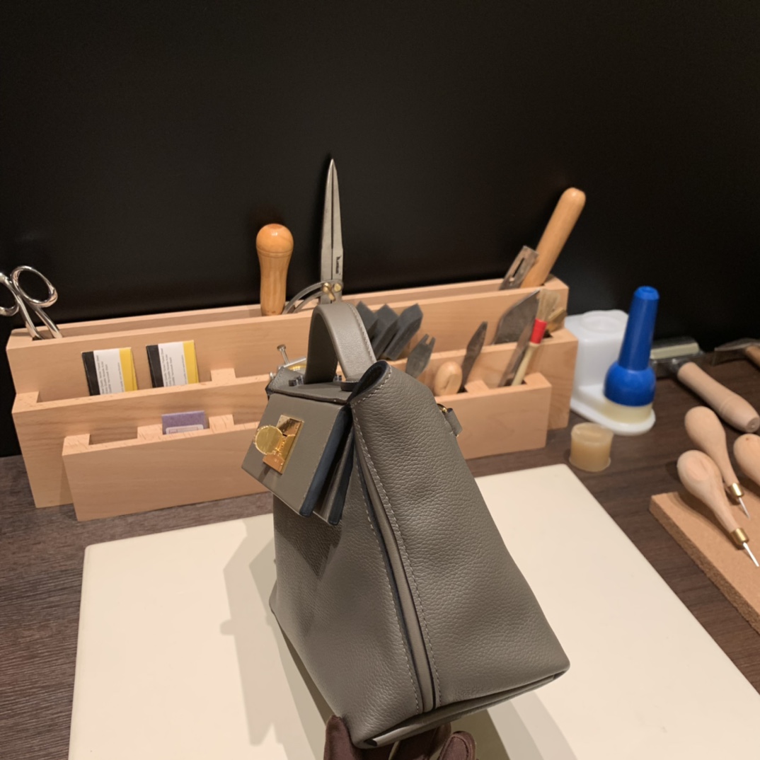 エルメス ケリー 21cm Mini2424 evercolor&swift 8F /Etain ゴールド金具 全手縫い